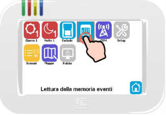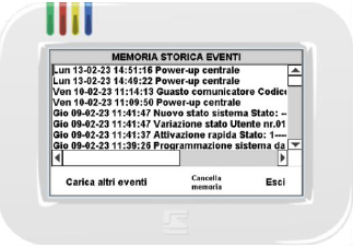 La "memoria storica" o "memoria eventi" ti aiuta a ricostruire tutti i passi eseguiti da un utente, consulare gli orari di attivazione, di accesso alle funzioni di esclusione, delle chiamate eseguite dal sistema o degli allarmi avvenuti. Vediamo i passi necessari per eseguire la lettura dell'archivio.